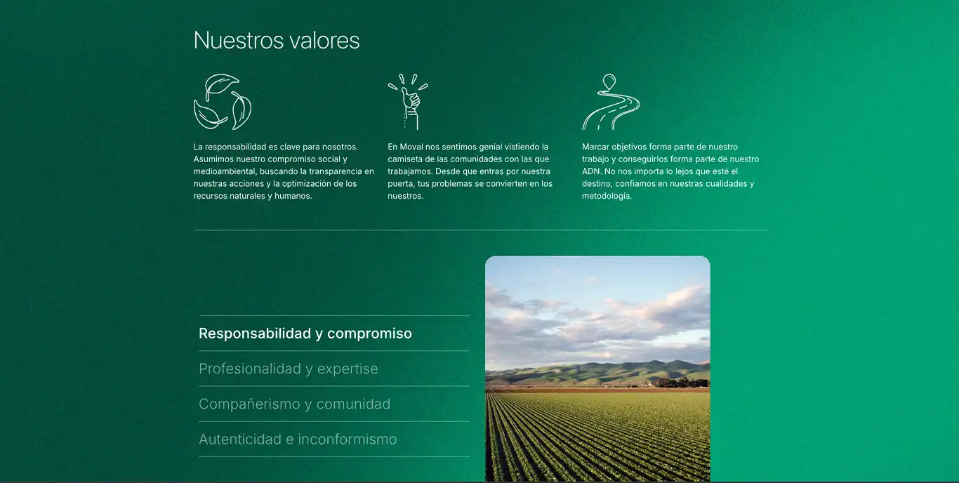 Desarrollé la página web oficial de Moval, una empresa líder en ingeniería agrícola y medioambiental. La web está diseñada para destacar su amplio portafolio de servicios, como proyectos agrícolas, sostenibilidad y consultoría ambiental. Incluye un diseño moderno y optimizado para dispositivos móviles, asegurando una navegación fluida y una presentación profesional de sus valores y experiencia en el sector.